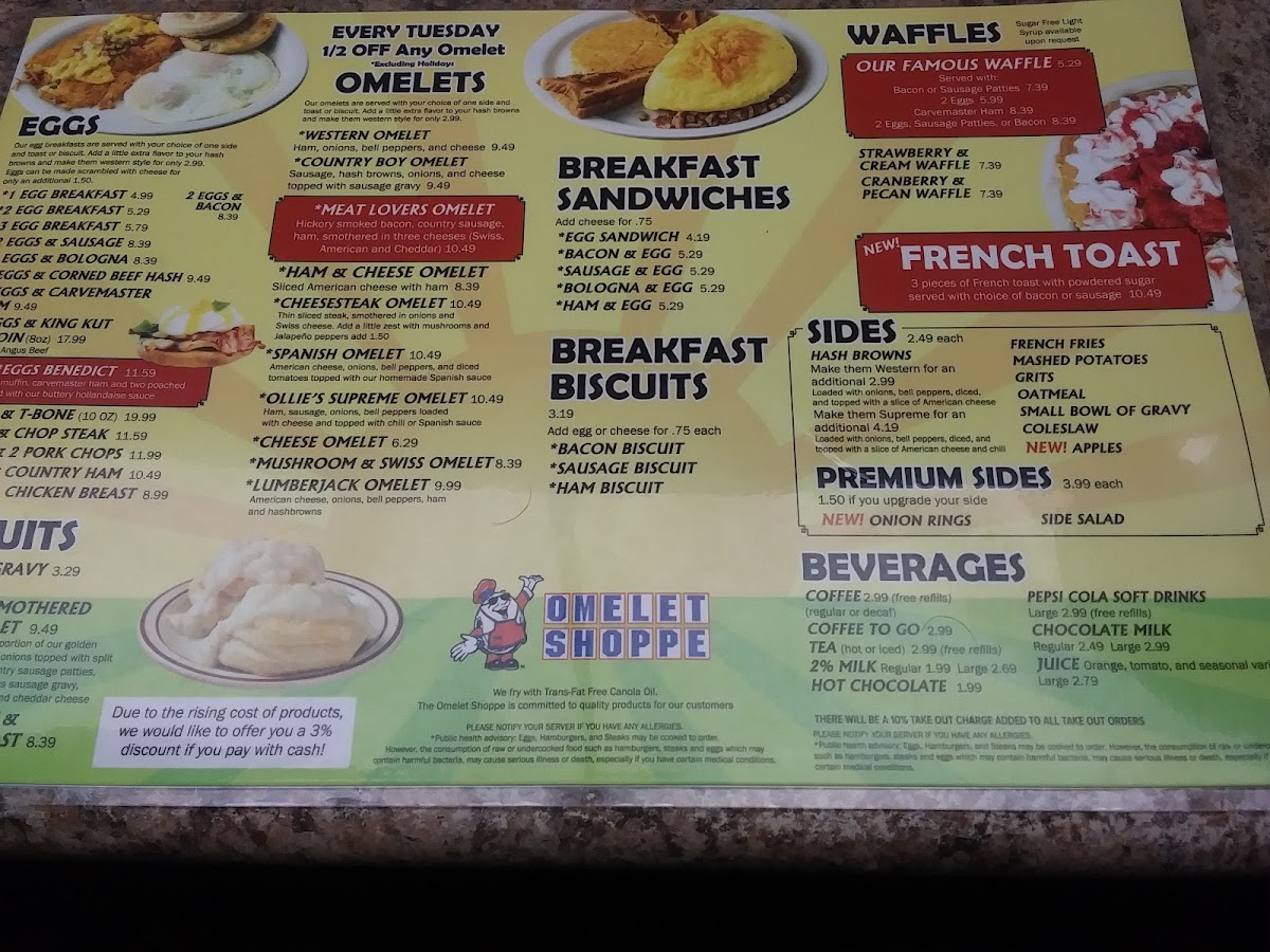 Customer reviews highlight the warm service and delicious food, with many patrons returning for the experience. Whether you're craving a hearty breakfast or just a cup of hot coffee, the Omelet Shoppe promises to invigorate your mornings with flavor and friendliness.